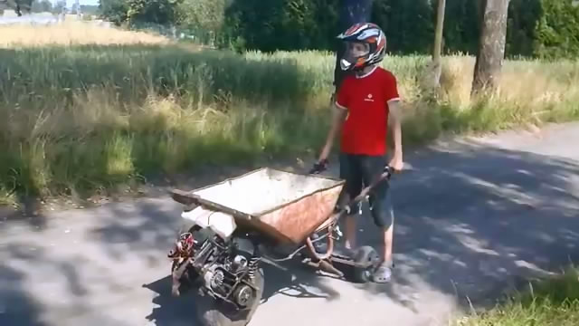 An engineer from Poland built an automatic motorized rickshaw that does the job at building easier.
