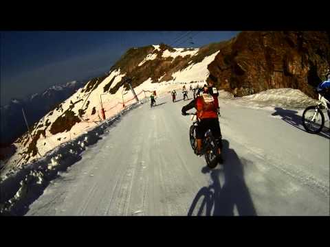 The Megavalanche is a cycling Marathon which includes downhill from the Alpe D'Huez French Alps in France. about 2.000 Cyclists take part in this crazy journey that starts from an altitude of 3,300 meters.