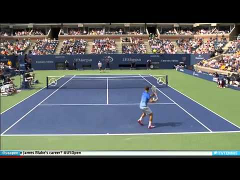 With a stunning overhead shot, The Rafael Nadal wins the point against Ryan Harrison in the first round of US Open 2013