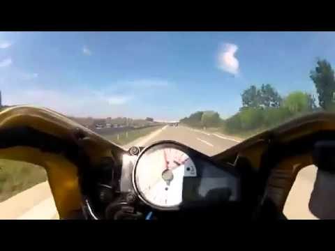 Motorcyclist braked sharply as it moves with 240 km / h on the motorway, and avoids the accident.