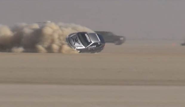 In Land Speed Racing race held in California, Brian Gillespie driver loses control of his vehicle while traveling at 300 km / h. The vehicle spun several times before stopping, while later the driver will come out of this unharmed with small injuries as safety equipment saved his life.