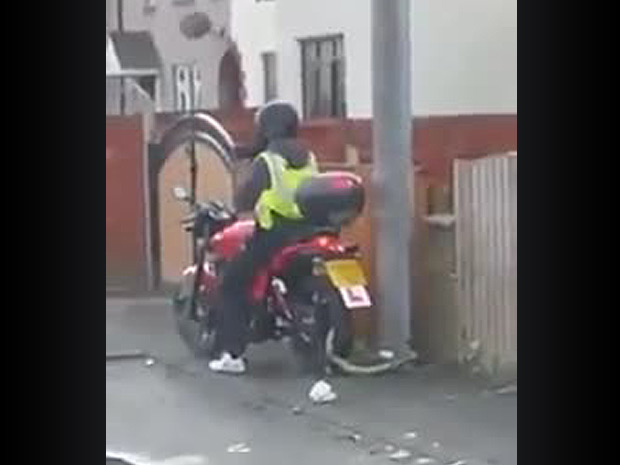 This motorcyclist designed almost everything, She wore the special fluorescent tee, Isothermal jackets, He put his headphones. Unfortunately, skidded a little detail.