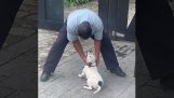 As he played, η Zoe, a 9 month old dog, suddenly attacks a man and surprises him. Hard pictures.