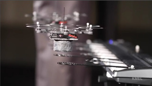 The Robotics KMel, a company manufacturing robotic systems, He created a band of six small programmable helicopters that play music. The music playing in this demo shows us how accurate are these little robots while flying.