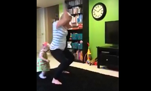 Mom wanted to dance in front of the camera, but no one noticed the little daughter of coming from behind. The baby will fall to the ground without xafniasmeno fortunately injured.