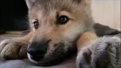 In Wolf Protection Center 'Wolf Conservation Center' in New York, barely eight weeks wolf Nikai has a small hiccup.