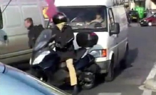 Smart and very funny prank with a fumigant and victim of a motorcyclist.