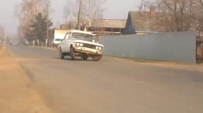 In Russia, a car with strabwmenoys wheels gives the impression That dances to the beat of the music.