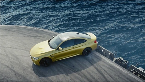 The new BMW coupe M4 quickly earns a reputation as a high-performance luxury car. In this video, the company chose to make a nice promotion, introducing the M4 to drift onto an aircraft carrier, in the middle of the ocean. The scene is clearly inspired by the movie Fast & Furious and of course contains several doses of digital effects.