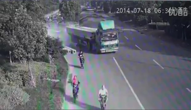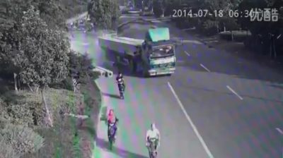 As it loses a part of its cargo while moving in China's Tianjin City, a truck driver skids and two massive concrete beams pass through the cabin of. Fortunately, the man gets out of the truck without injured.