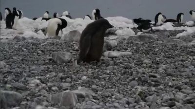 A young penguin in Antarctica, has an unlucky moment.