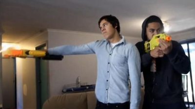 An innocent game with kids Nerf guns at home, ends in a long bloody battle. A very fun video of Australians Danny and Michael Philippou.