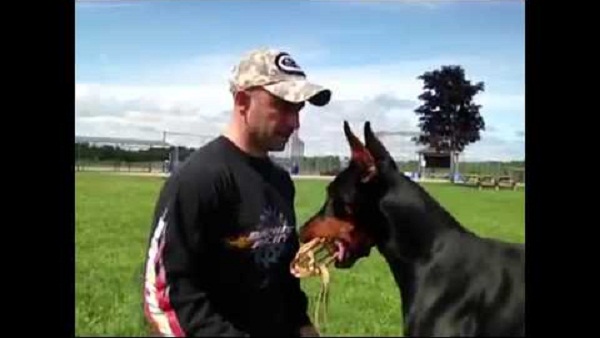 The owner of a Doberman in Ontario Canada makes us a demonstration of astonishing intelligence and training of.