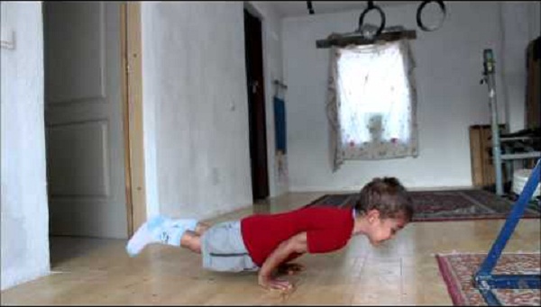 The Claudio Stroe, a boy of 5 years from Romania, do push-ups 90 degrees for more than one minute.