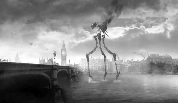 The History Channel combine digital images and video file from the first world war, to create a short film inspired by the movie 'war of the worlds'. Big alien robots attacking soldiers and tanks, destroying everything in their path. This retro-futuristic black and white short film directed by two British Christian Jοhnsοn and Steve Maher.