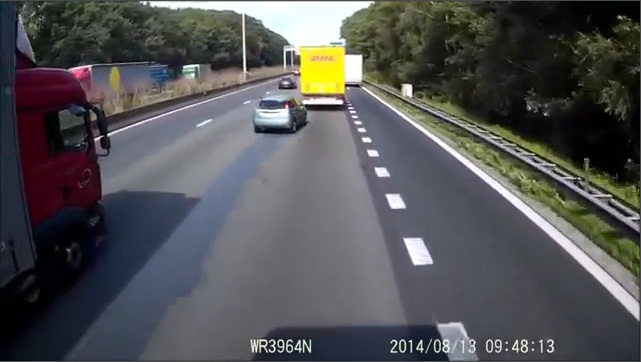 On August 13 and the motorway between Ghent and Bruges in Belgium, a shocking accident recorded on webcam. A guide will try last time to prevent the exit, changing with great speed two lanes without visibility. Will collide in a truck that has stopped due to traffic jam, and then her car struck the front truck that records the scene. The Guide, an older woman, was rushed to hospital in critical condition, but survived.