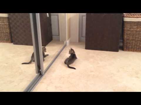 After discovering his reflection in the mirror for the first time, this adorable Tabby kitten goes straight into attack mode! Unfortunately the harmless reflection doesn’t back down and the adorable kitten walks away defeated.