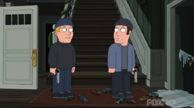 The series 'Family Guy' satirizes with scathing black humor the Christmas movie 'Home Alone'.
