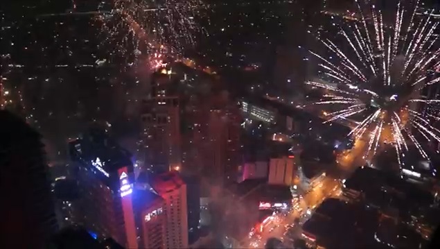 Panoramic view from the top of the skyscraper Skycity, the tallest in the country, offers a spectacular sight of the fireworks display to celebrate the new year in Manila, the capital of the Philippines.