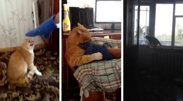 A young in Russia annoys his cat with a kitchen glove. The angry cat will seek revenge…