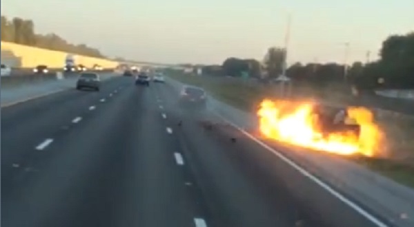 Turnpike highway in Florida, USA, a drunken woman detonates in a van with three occupants, After collision. The driver noticed a car that came with a speed back and wanted to make it right, but not noticed the vehicle stopped on the roadside. Fortunately, the three men in the van managed to escape in time, and suffered only minor injuries. The woman arrested.