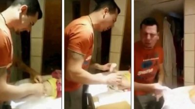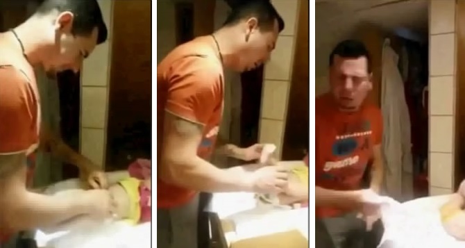 A father has accepted the challenge to change diapers for the first time in baby. This was the reaction.
