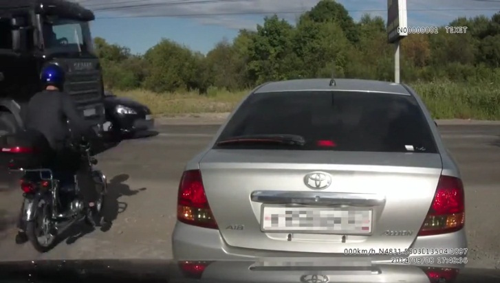 In Slovakia, a man tries the new motorbike, I just purchased a few hours earlier. As it moves toward the street, slips and falls on the wheels of a truck that was passing at that moment with great speed. Very afraid, the man flees from the scene full of terror and only a few scratches. The motorcycle was completely destroyed. The accident recorded in the village of Besa located in the region of Košice.