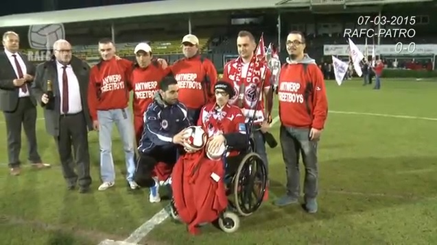 The Saturday, March 7, 2015 and two days before his death, the Wim de Clerck, a fan of the Club Royal Antwerp (B Belgium category), came for the last time on the field to say goodbye to his beloved team, players and fans. The Wim de Clerck was a fan of the Club since young age. Very sick now, came on the Court in a wheelchair and held its kick-off.