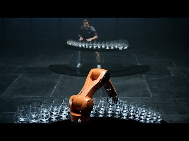 The revenge is on. Man and machine are ready. The KUKA KR AGILUS and Timo Boll face each other for a new match. But this time, there are no rackets and no balls – there’s only glass.