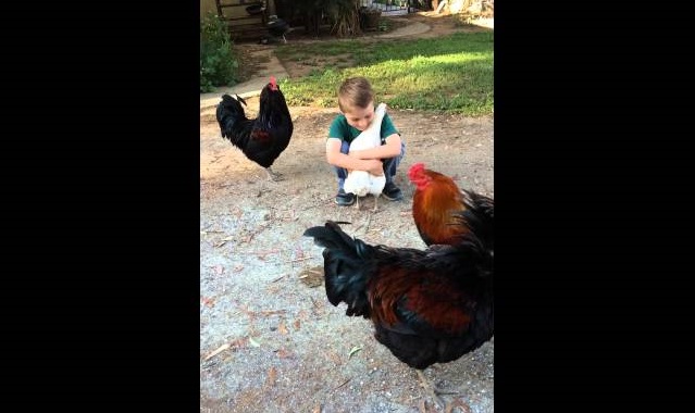 Communication with animals is done with body language. The young Mason who had seen in older videos, This time he comes home with a new haircut and tries to greet his beloved hen. But initially, the chicken seems to not be sure about who is. But after a quick exploration made sure that was a good friend of, and returns to the embrace of.