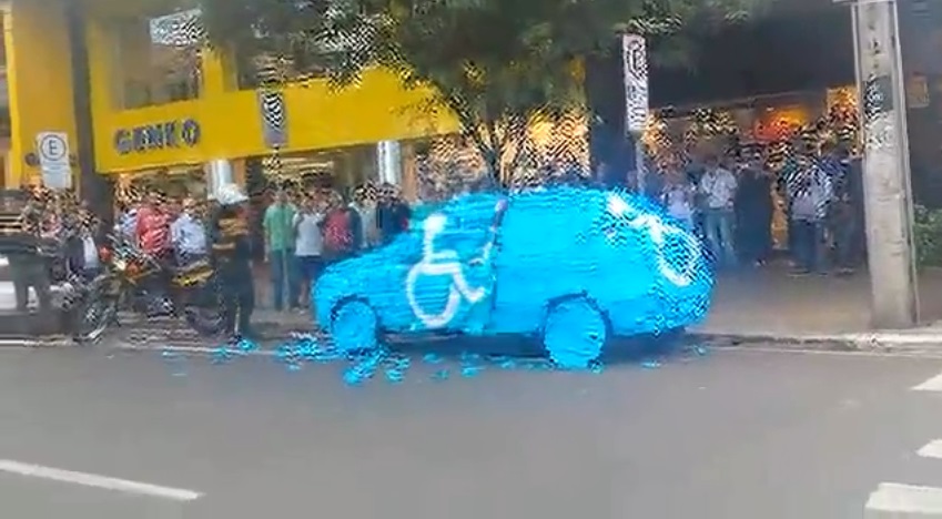 On Wednesday, June 24, 2015 in Maringa, Brazil, a guide had an unpleasant surprise when he went to get his car, that was parked in a position reserved for people with disabilities. The vehicle was covered with blue and white adhesive papers post-it that formed the symbol for the disabled. Furious, the man pulled out a piece of paper on the windshield and window, before you leave.