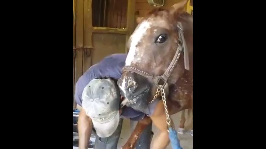 On a ranch in Florida, USA, Jack the horse expresses his love to a farrier, Installing petals at his feet. The horse pulls the tongue to lick her face and the ear of the man. Jack was born on May 14, 2010 to issue jaw and had to undergo surgery in 2014.