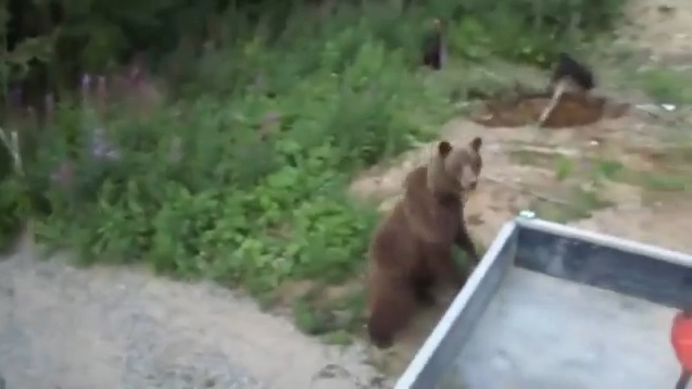 A workman who is located near forest record the attack that accepts he and his dogs, from a bear. Sitting on top of a crane, saves the furious bear feels that threatened small of.