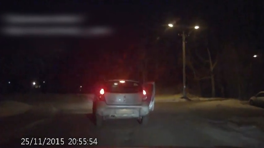 A mother in Russia has not taken care to protect her baby in the car, and the little kid opens the door and falls out of the vehicle in motion. Fortunately, the following guide brake in time.