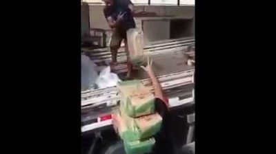 Worker in Brazil manages to stack and move back 12 bags of charcoal.