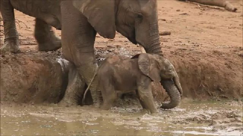 In Africa, a Mommy elephant tries to help the small to go out from a nerolakko but fails. Then elephants of the herd who see what happens will hasten to help with their proboskides. A solidarity that is not unusual in these mammals.