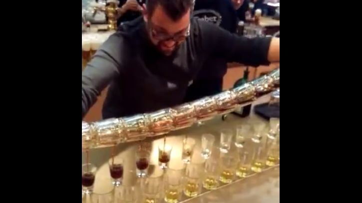 The particular technique of a bartender in the city Altchaϊm of Austria, for the preparation of 15 submarines with Jägermeister.