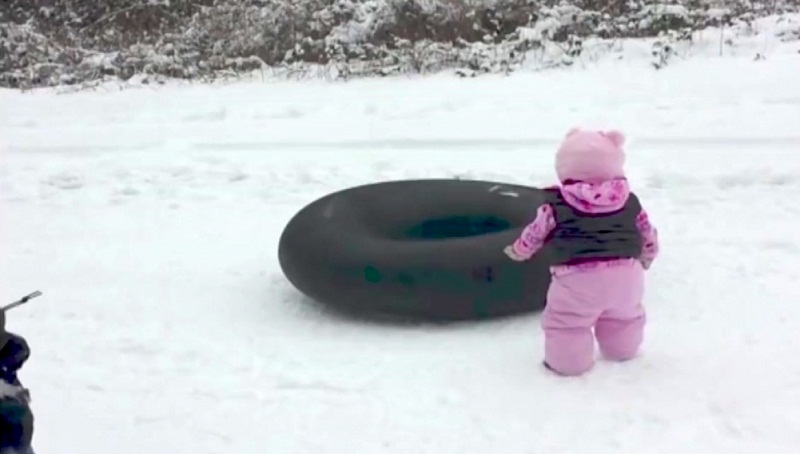 A dog finds an opportunity to enjoy the snow with a strange way. The ultimate binteobomba.