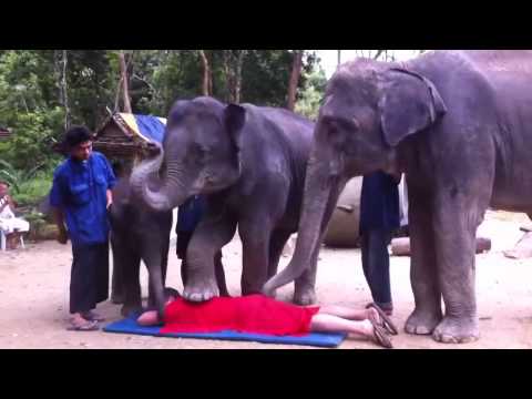 Elephants doing massage