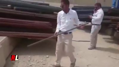 At a construction site in Saudi Arabia, a man experiencing a strength rebars manufactured in Iran.