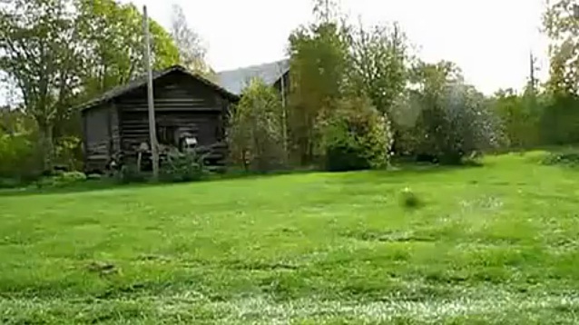 in Latvia, a dog watches a zookeeper try to catch a rescued badger to return him...