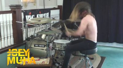 Drummer Joey Muha at a delightful interpretation of the famous music of Flinstooyns, in Metal style.