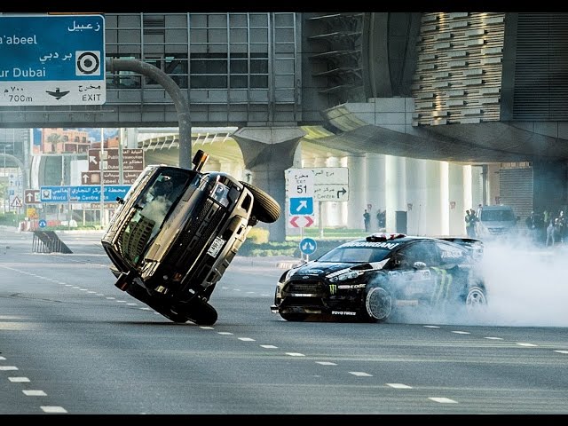 The Ken Block in a Ford Fiesta ST RX43 650 hp, do some drift through the deserted streets of Dubai. The program this time includes drifts, patrol, supercars, a Jaguar (the animal), deserted streets and a Boeing 747. The Sheik Zayed Road, the main artery of the city of Dubai, eliminated completely during filming.