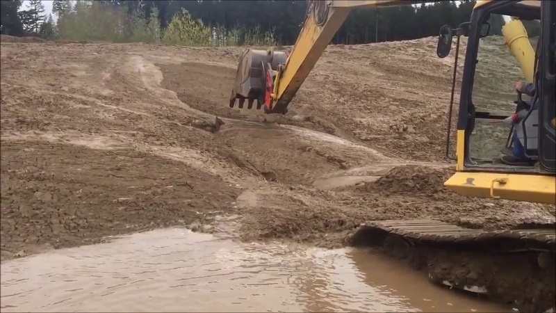 An experienced operator uses backhoe to save a small deer that is stuck in the mud. Using the bucket of his machine, the manipulator removes methodically mud around the fawn before carefully grab the animal to remove.