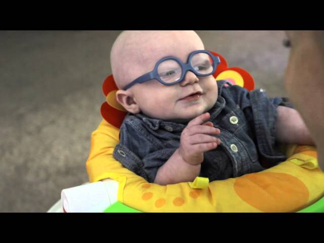 A baby suffers from alfismo, thing that has caused vision problems after birth. Here time for first time glasses and make a big smile to his mother. The albinism is a hereditary disorder that affects about one child in 20.000.