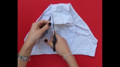 A woman shows us how can transform an old male underwear using a pair of scissors.