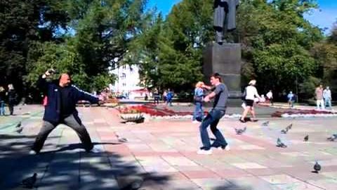In the district of Roppongi, in Tokyo, Japan, a pigeon wedges a paper base of.. several times in its head..