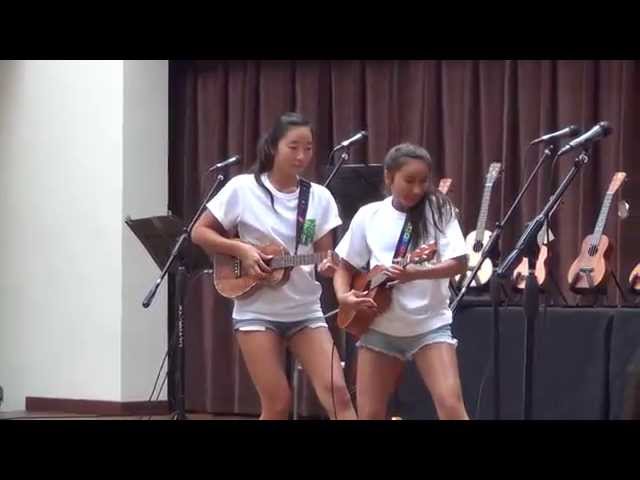 The Honoka and Azita, two young girls from Hawaii, they perform the track 'Wipeout' beautifully with their ukuleles, in musical contest.