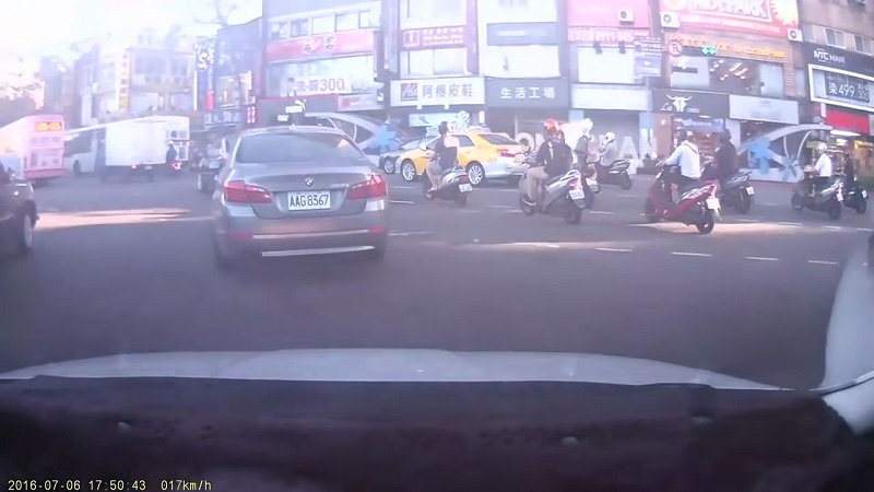 On July 6, 2016 in the city of Taipei in Taiwan, a guide seems like playing bowling on the way. The accident occurred at an intersection, when a woman 59 years confused the brake with the accelerator and lured many scooters in its wake. There were seven wounded, but fortunately not seriously.