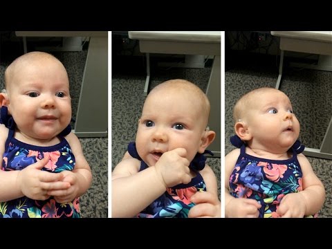 As mum Sarah Jo asks her if she can hear, the three-month-old breaks out in a massive toothy smile.